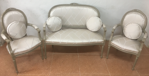 Restauración de sofá y dos butacas y tapizado con asiento en muelles