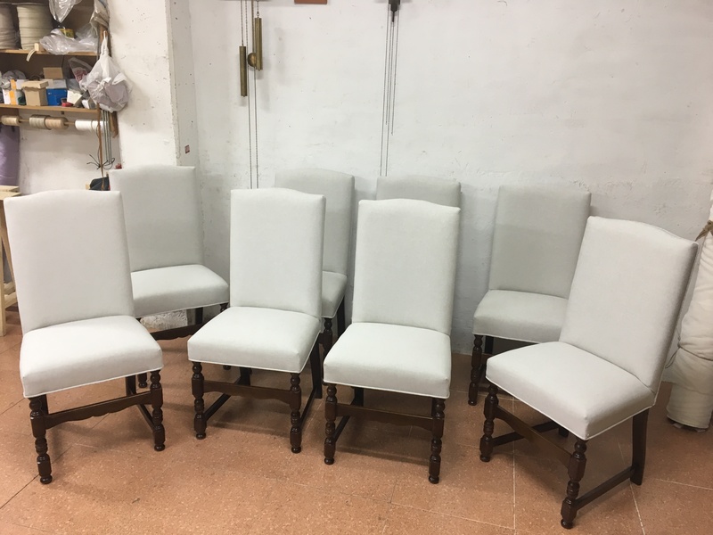 • tapizado de ocho sillas con respaldo tapizado en aluche