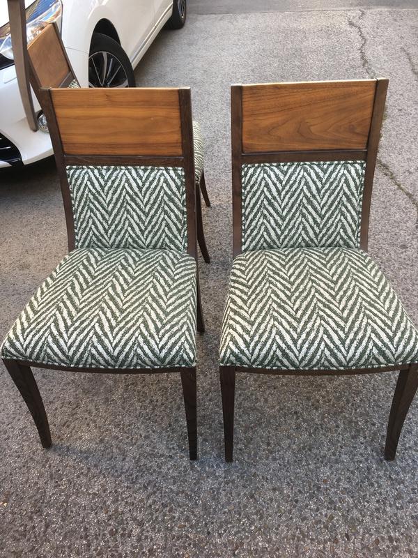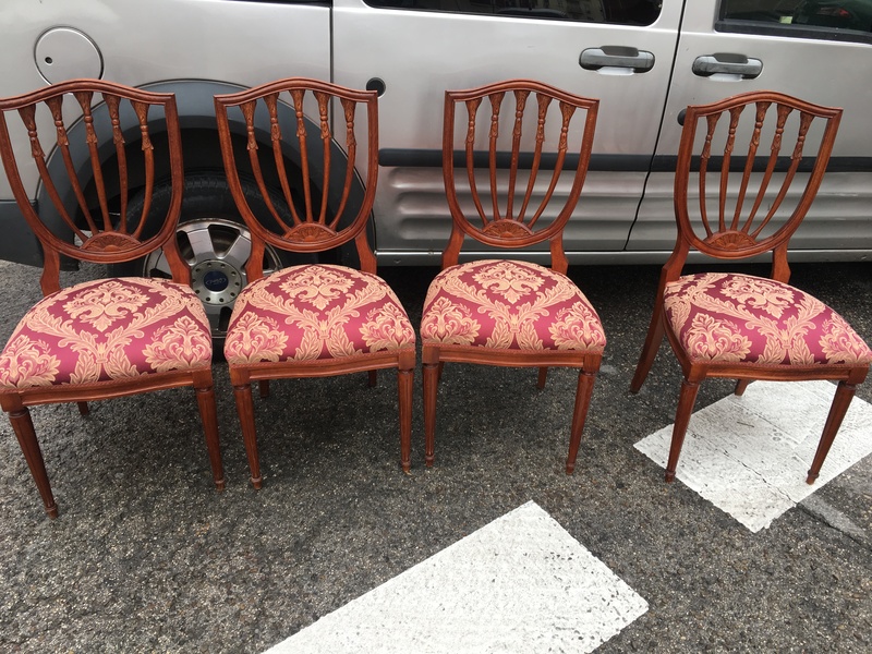 • Tapizado de cuatro sillas con respaldo tapizado en tela damasco en barrio de salamanca